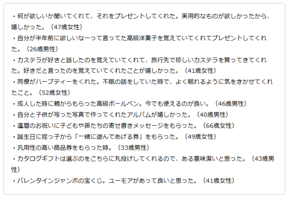 【 「プレゼント・ギフトに関する調査」 トピックス 】